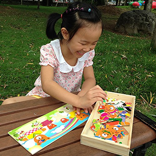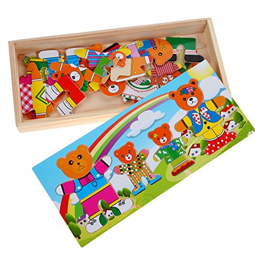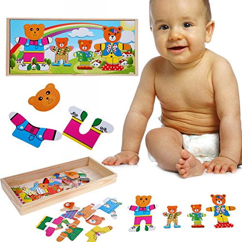 Demiawaking かわいい幼児 子供 教育教材 木のおもちゃ 知育/啓蒙 教育おもちゃ ベア一家 自由に組み合わせ