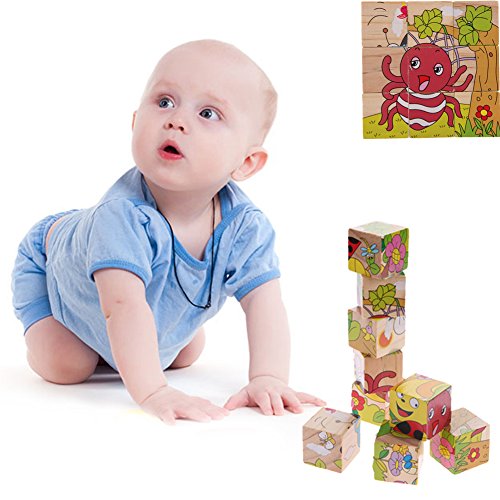 Demiawaking かわいい幼児 子供 教育教材 木のおもちゃ 知育/啓蒙教育おもちゃ 電車積み木・6模様できる