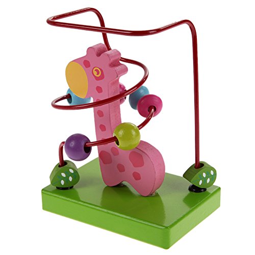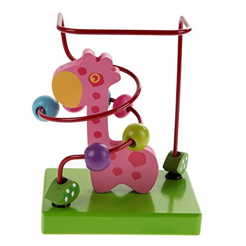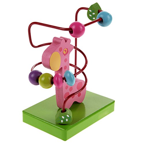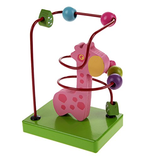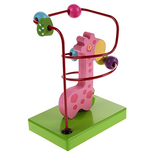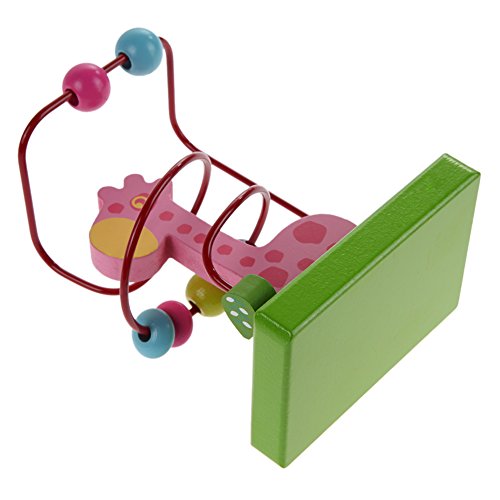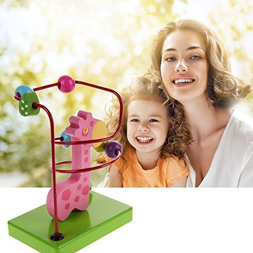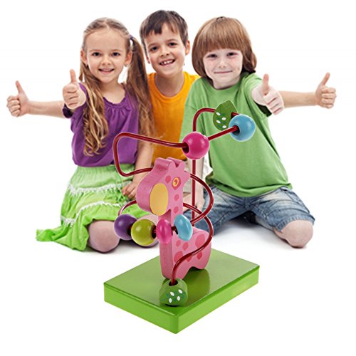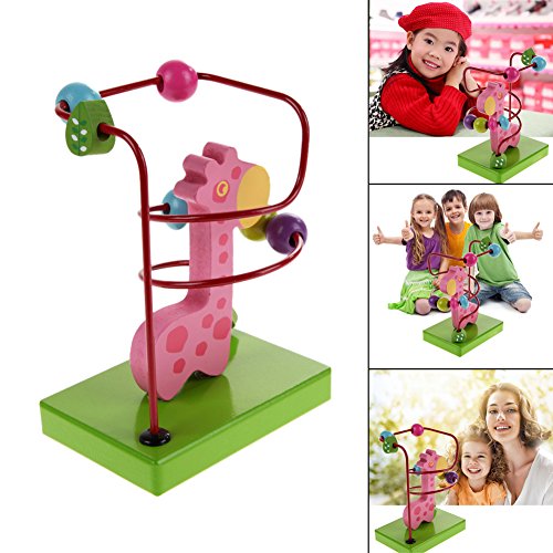 Demiawaking 木製 動物 トレーラー ビーズコースター ルーピングセット 指先トレーニング 形を認識でき 赤ちゃん子供知育玩具 (ピンクキリン)
