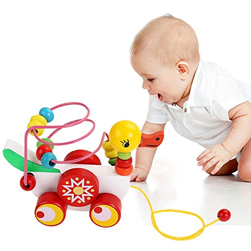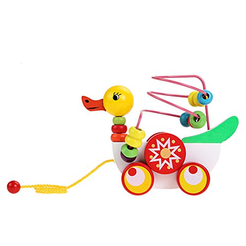 Demiawaking 木製 かわいい イエロー アヒル ルーピング 子供 知恵 おもちゃ