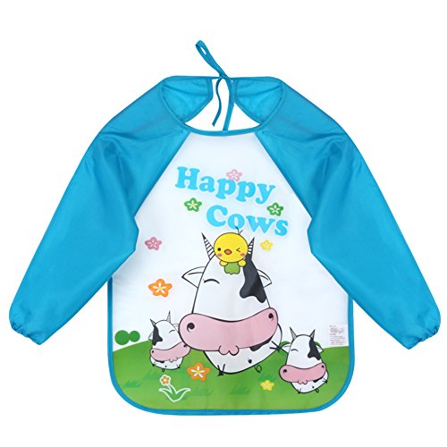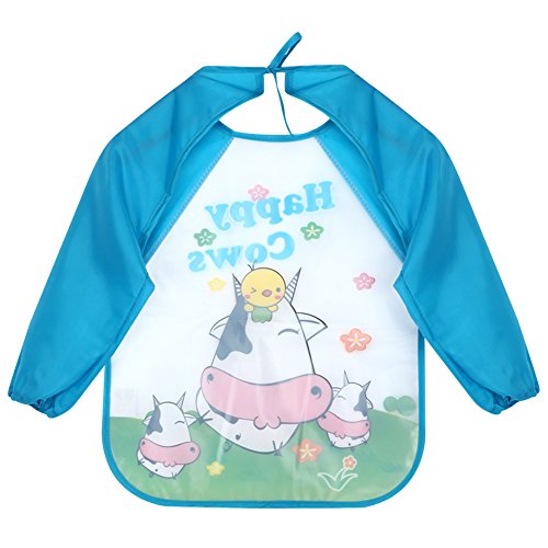 Demiawaking 子供用よだれかけ ベビービブ お食事用防水ビブ 長袖タイプ 洗う必要ないエプロン 可愛いプリント 食事、遊ぶ時クリーンをキープする(はち)