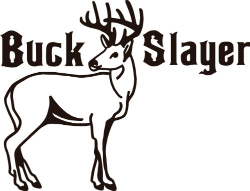 Buck Slayer Letters with Deer / Buckイメージ動物狩猟ハンターMan with gun画像アート – Boys Kidsベッド部屋スポーツ趣味 – ピールスティックステッカー – ビニール壁デカール – サイズ: 10インチx 20インチ – 22 Colors Available