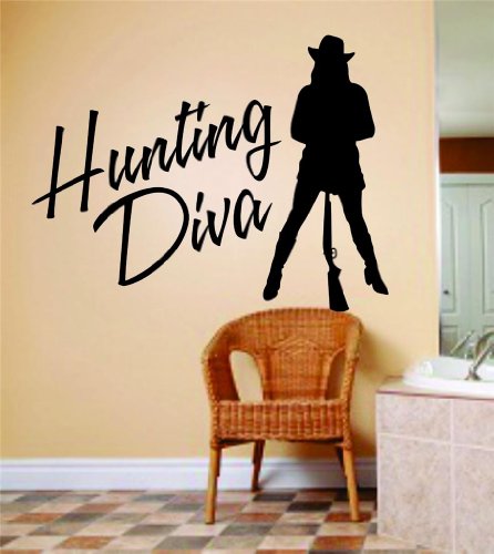 トップ販売デカール – 価格Reduced : Hunting Diva文字レタリングwith Deer Buckイメージ動物狩猟ハンターMan Gun画像アート – 女の子のレディース子供用ベッド部屋スポーツ趣味サイズ: 12インチx 24インチ – ビニール壁ステッカー – 22 Colors Available