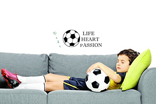 Personalizedカスタム名Soccer Life Heart Passion Quoteティーン寝室子供ステッカービニール壁デカール14インチx 28インチ