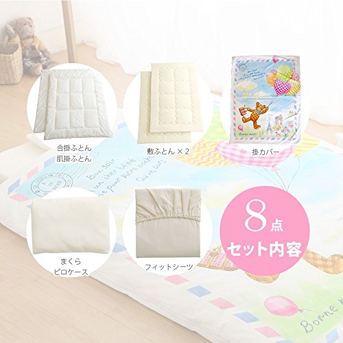 - 掛カバーは、細かなモチーフや微妙な色合いを見事に仕上げた、水彩画のように鮮やかなカバーです。 赤ちゃんのかわいさを引き立てる仕上がりになりました。 掛ふとんと枕の中綿には、汗を瞬時に吸い込み、放出することに優れた天然繊維テンセルを使用。 敷ふとんは、保温性の高いフリース素材と、通気性抜群のハニカム素材の2枚セットで、季節に合わせて使い分けできます。 また、この敷ふとんは1枚ずつ洗え、より清潔にご使用いただけます。 サイズ 合掛ふとん 95×120cm 肌掛ふとん 95×120cm 敷ふとん(×2) 70×120cm 枕 25×35cm 掛カバー 102×128cm フィットシーツ 70×120cm ピロケース 28×38cm