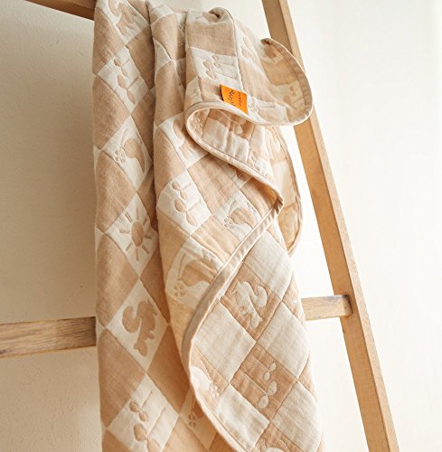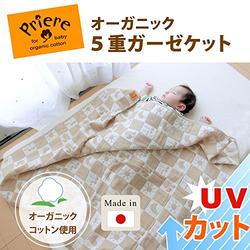 オーガニックコットンを5重に織合わせ、肌触りにとことんまでこだわった5重ガーゼケットです。 お昼寝にはもちろん、ベーカーでのお散歩や、チャイルドシートにご利用ください。 UVカット率99%以上の生地なので、お出かけにも安心。 赤ちゃんの敏感な肌を守ります。 織りから仕上げまで国内でしており安心です。 プレゼント・ギフトとしても最適。 サイズ 85×115cm 規格 ■生産地:日本 ■素材・成分:綿100%