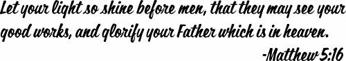 Let Your Light So Shine Before Men Matthew 5:16 Quote - Religious Inspirational Vinyl Wall Sticker Decal For Home Childrens Bedrooms Boys Girls - 28 inch x 5 inch