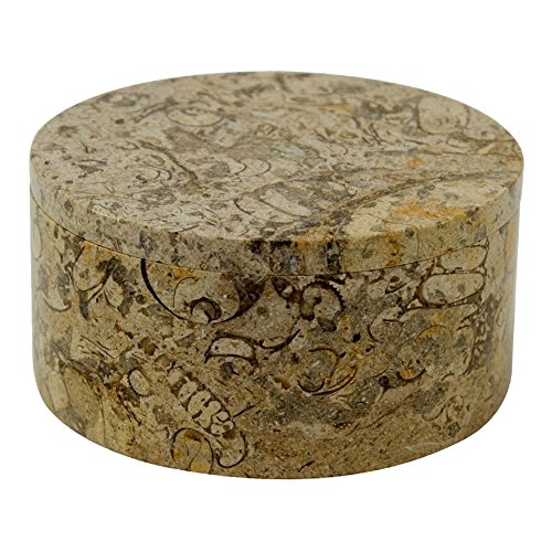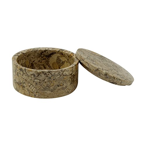 Eirenne Collection Circular Keepsake Box - Fossil Stone - 5 diam. x 2.75H in. by Designs by Marble Crafter