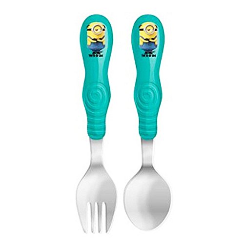 怪盗グルーのミニオン大脱走 オフィシャル商品 フォーク・スプーン 子供用カトラリー 2点セット (ワンサイズ) (ブルー/イエロー)