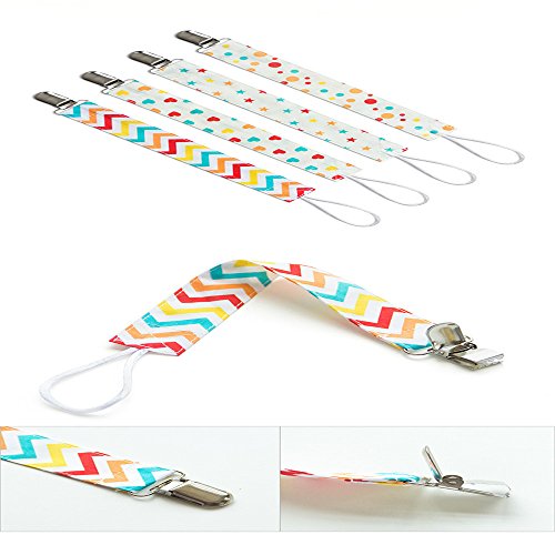 Dewel おしゃぶりホルダー かわいい 子供 おしゃぶりクリップ ベビー チェーン グリップ 落下防止 紛失防止 27cm 4枚セット