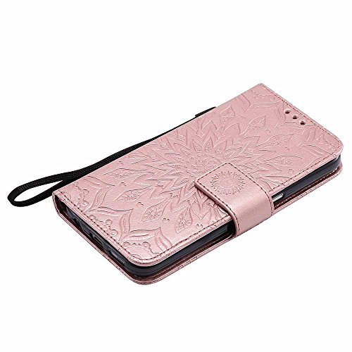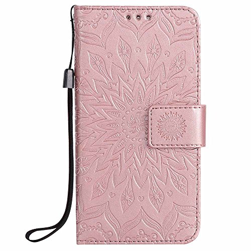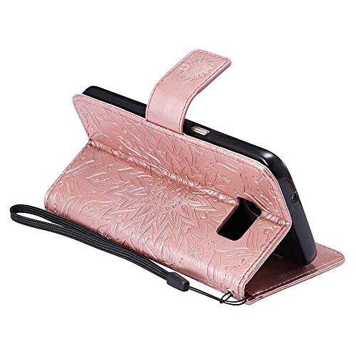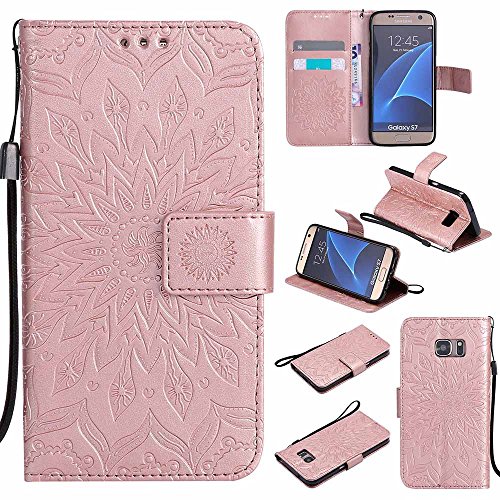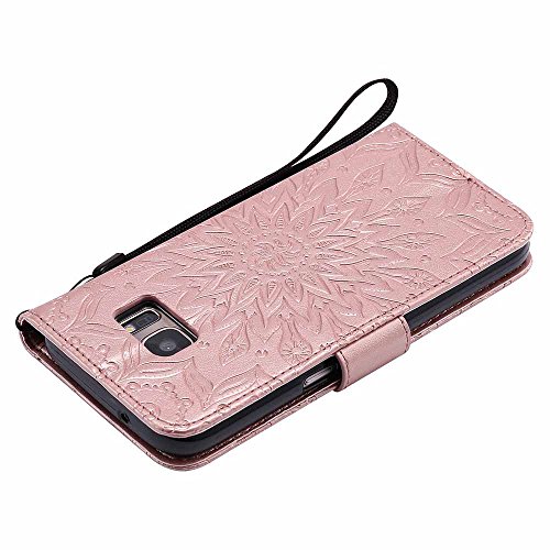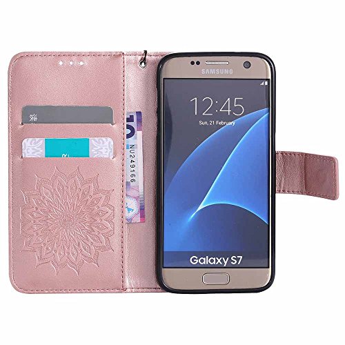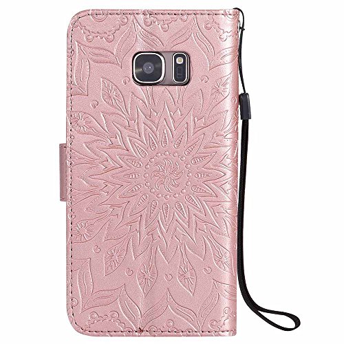 Galaxy S7 ケース、 Dfly 高品質 PU 革 を エンボスマンダラ花デザイン 財布型 スタンド機能 ウルトラスリム フリップ マグネット吸着 ケース Samsung Galaxy S7、 ローズゴールド