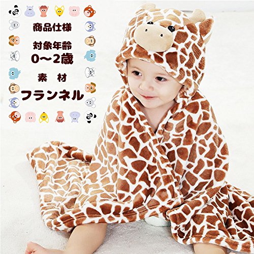 キリン柄ベビーブランケットです。 男の子にも女の子にもとてもキュートなブランケットです。 出産祝い、誕生日、贈り物に最適です。 お風呂あがりに着るのもいいですし、これから夏になるとプールや海に行ったときにも活躍します。 素材:ポリエステル100% サイズ:60-80