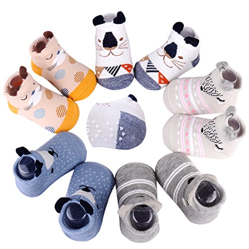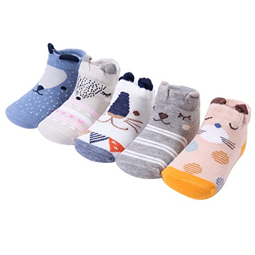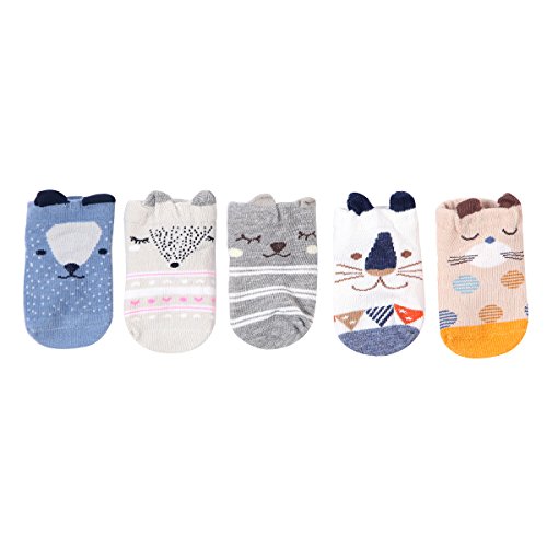 dicry 5ペアユニセックスベビーソックス3d Ears Non Skid動物ソックス幼児新生児の 0-6 Months マルチカラー