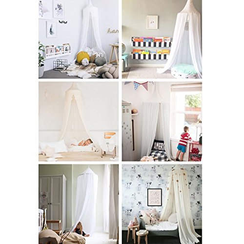 Didihou 蚊除けキャノピー レース 丸型ドーム プリンセス風 蚊帳 無料の吊るし飾り付き 赤ちゃん 子供 読書 遊び 屋内ゲーム 自宅向け 94.5" ホワイト COMIN18JU058017