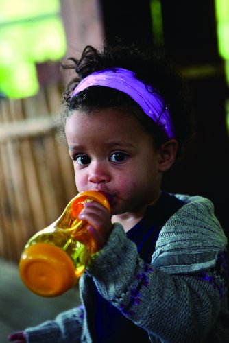 1 くびれたボトル 子供の手の平に収まり、握りやすいように中央がくびれています。