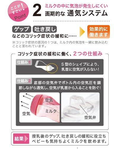 ゲップ・吐き戻しなどのコリック症状の緩和に効果的に働き、赤ちゃんが気持ちよく飲めます。