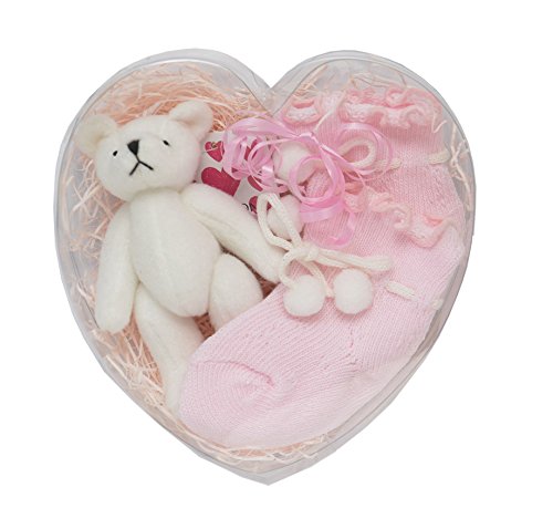 DinDon ベビー靴下セット ディアーエンジェルベア&ソックスセットボンボン 0-3M ピンク #61246