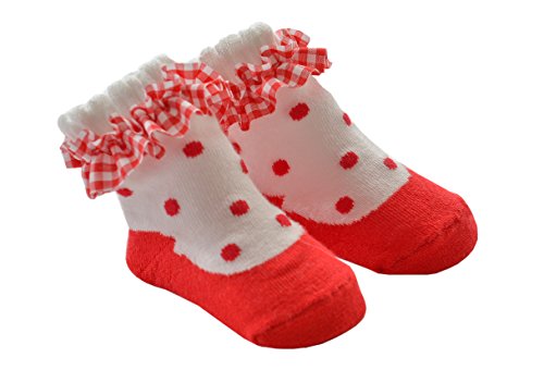 DinDonオリジナル ベビー靴下 チェッキーズ 0-12ヶ月 レッド #5112