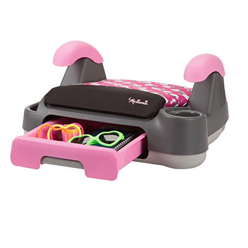 Belt-positioning booster: 40-100 pounds;Keeps kid's gear easy to reach during the ride-no need to unbuckle to get to them;Kid-friendly latch keeps drawer shut;Built-in cup holder and additional storage on sides of seat;Includes seatbelt positioning strap for a customized fit