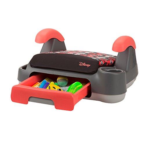 Belt-positioning booster: 40-100 pounds;Keeps kid's gear easy to reach during the ride-no need to unbuckle to get to them;Kid-friendly latch keeps drawer shut;Built-in cup holder and additional storage on sides of seat;Includes seatbelt positioning strap for a customized fit