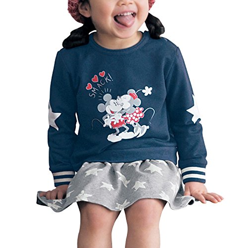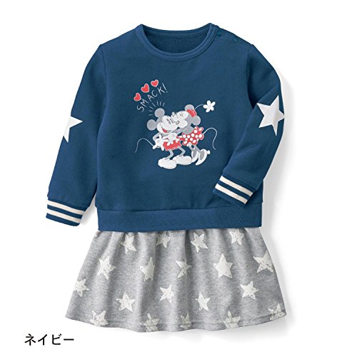 【Disney】ディズニー レイヤード風ワンピース ミッキー&ミニー ネイビー 80