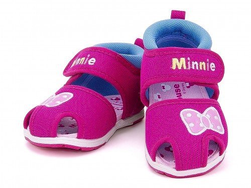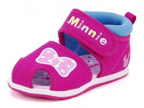 ミニーちゃんの可愛らしいベビーサンダル☆メッシュ素材を使用し、汗を吸収してくれるので蒸れにくく快適です。スポーツサンダルタイプで脱げにくく安心!マジックテープが大きく開くので脱ぎ履きも楽チンです♪※展開サイズ:キッズ