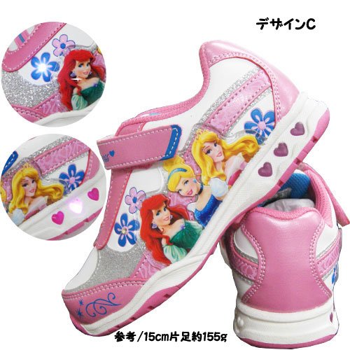 Disney ディズニー プリンセス キッズ 子供 光る 運動靴 スニーカー 女の子 - デザインC17.5cm