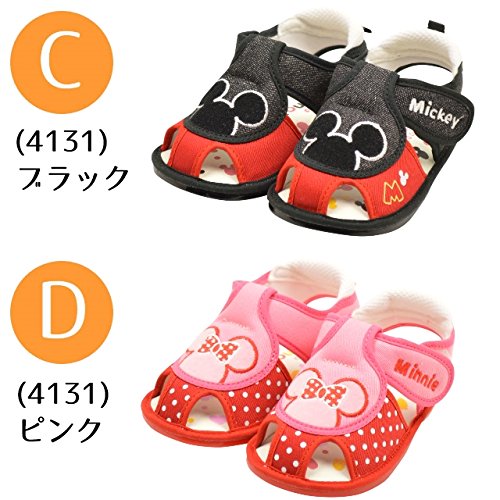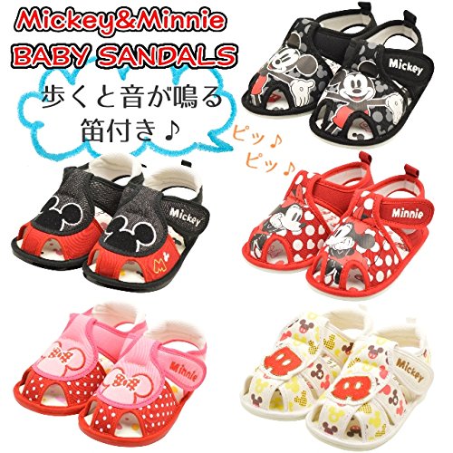 Disney ディズニー ミッキー ミニー ベビー サンダル 歩くと音が鳴る笛付き (0141) ブラック 13.5cm