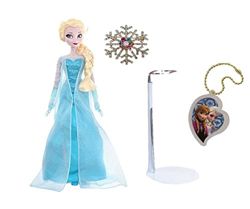 ディズニー 公式 豪華4点セット【シンギング ドール エルサ /ドールスタンド / キラキラ雪の結晶ブローチ /お楽しみチャーム 】Disney 歌う人形 [英語]40cm フィギュア アナと雪の女王