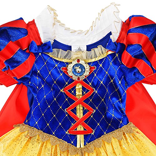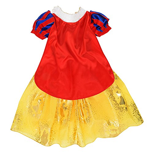 これであなたもディズニープリンセス・・☆パーティーや誕生日などのイベントにピッタリの白雪姫のドレス。色鮮やかな生地に、ふわっとしたパフスリーブ、ゴールドのプリントや胸元についたカメオ風の飾りなど、こだわりがギューっと詰まった1着です。ウエスト部分はゴム仕様なので、可愛らしいふんわりシルエットが生まれ、着脱もラクラク♪キラキラゴージャス気分を楽しんで♪