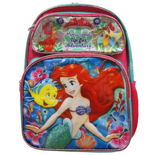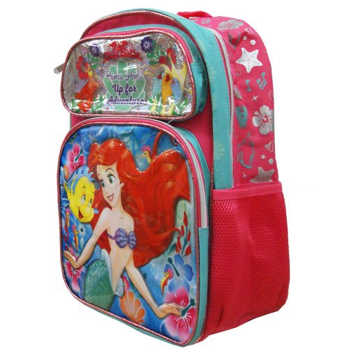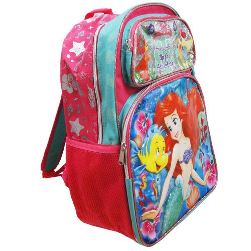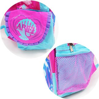 【アメリカ買付商品】 Disney ディズニー プリンセス アリエル 子供用かばん リュックサック たっぷり入る大きいサイズ 小学生以上のお子様向けサイズとなります。 前面ファスナー付きポケット2個 両サイドにはメッシュポケット各1個 ※上段ポケット中にはラミネート素材でキラキラで豪華なデザイン サイズ:W/約30cm×H/約40cm×D/約11cm カラー:ピンク×エメラルドグリーン 素材:ポリエステル他 輸入国:アメリカ 生産国:中国