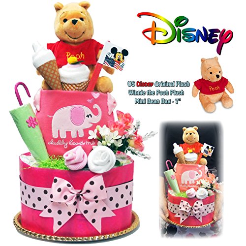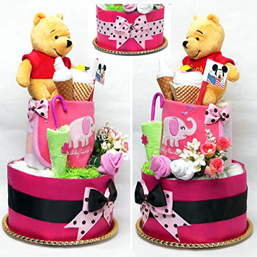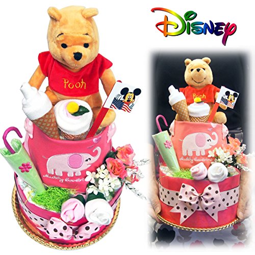 出産祝い おむつケーキ ディズニー 優しいプーさん パンパース 26枚 とっても可愛い贈り物 女の子 Mサイズ