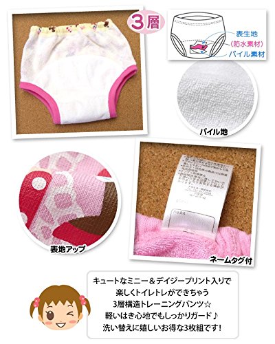 (ピンク/90cm) ベビー トレーニングパンツ トレパン 女の子 DISNEY ディズニー ミニー デイジー 3枚組 3層構造 女児 ベビー