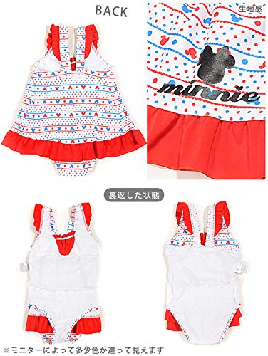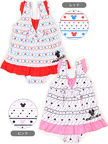 Disney Minnie Mouse 女の子用ドット&ボーダー柄ワンピース水着 8845 130cm レッド