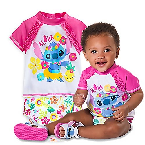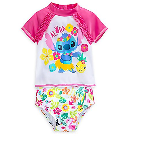 ディズニー リロ&スティッチ スティッチ 水着 ラッシュガード ピンク 90cm 18-24ヶ月 赤ちゃん 女の子 子供 キッズ 紫外線 UVカット
