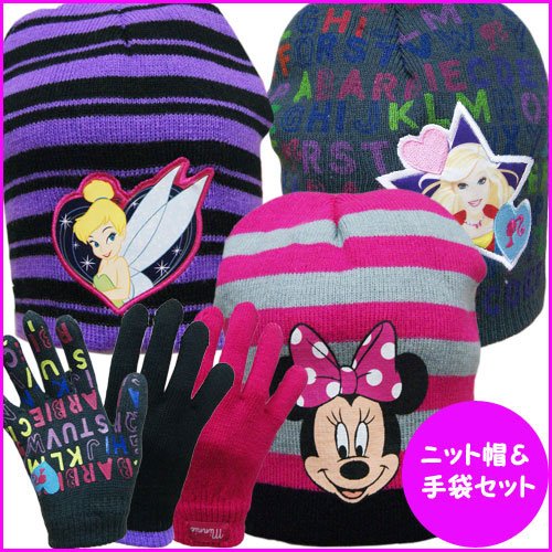 Disney ディズニー ティンカーベル キッズ 子供用 ニット帽 手袋 50~54cm 女の子 - デザインBティンカーベル