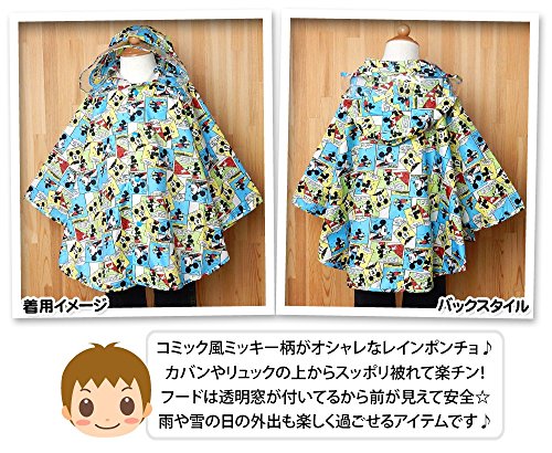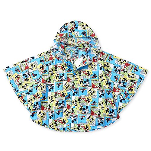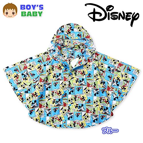 (ブルー/80-95cm)ベビー レインポンチョ レインコート カッパ 男の子 Disney ディズニーミッキーコミック柄 透明窓付きフード 撥水加工 男児 ベビー