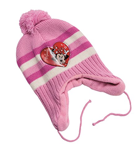 ミニーマウス(Minnie Mouse)オフィシャル冬用フリース耳フラップニット帽ビーニー(0~2歳)、ライトピンク - ディズニーオフィシャルグッズ