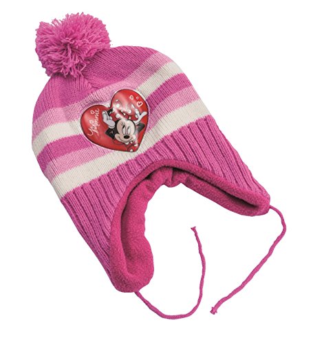 ミニーマウス(Minnie Mouse)オフィシャル冬用フリース耳フラップニット帽ビーニー(0~2歳)、濃いピンク - ディズニーオフィシャルグッズ