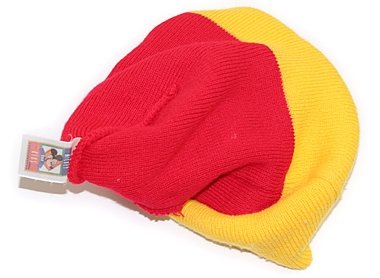 サイズ表記ありませんが頭周り実寸は40cm、折り返さない時の高さ25cmです。暖かなニット帽。若干毛羽立ち・糸の飛び出しはありますがまだまだ活躍してくれそうです。