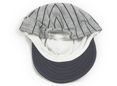 - Disney、プーさんのワッペンのCAPです。グレーとネイビーのストライプ柄で、カジュアルに合わせやすいです。実際のサイズ表記は、44~47cmです。色褪せがあります。