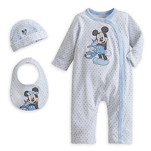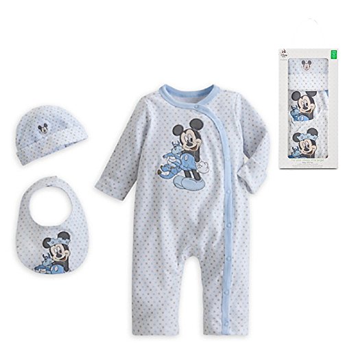 ディズニー ミッキーマウス 60cm 3-6ヶ月 ロンパース スタイ 帽子 ギフトセット 新生児 出産祝い 3点セット ミッキー 赤ちゃん 男の子 ベイビー ブルー 長袖