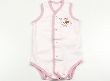 薄く柔らかいカットソー生地のロンパース。うっすら毛羽立ちはありますが目立った汚れのない良品です。お得な2枚セットです。洗い替えにいかがでしょうか?(記名あり)