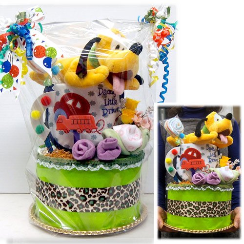 おむつケーキ 出産祝い ディズニー プルート は 信号守る良い子でシュ! 男の子 パンパース Mサイズ ダイパーケーキ