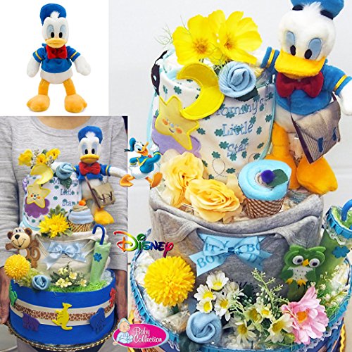 ディズニー おむつケーキ 出産祝い 可愛いー ドナルド 人気の豪華3段 男の子 女の子 パンパース Mサイズ