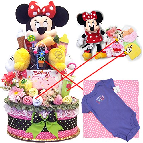 出産祝いに大好評 ディズニー おむつケーキ 大きい ミニーちゃん 貰ってビックリ 誕生プレゼント 内祝い ベビー用品でデコレーション 女の子 パンパース M