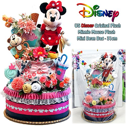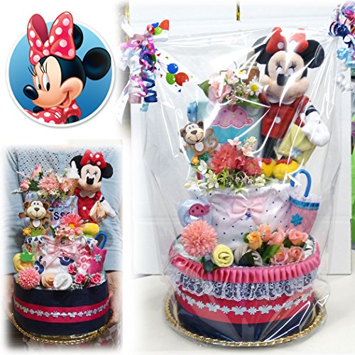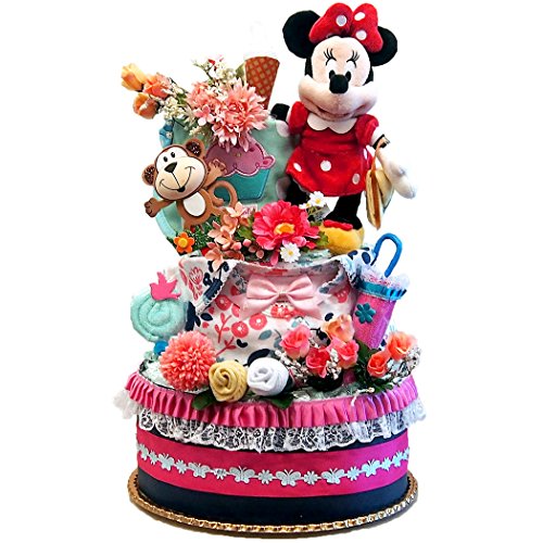 ディズニー おむつケーキ 出産祝い 可愛い ミニーマウス 豪華3段 女の子 テープタイプパンパース (M) 61枚 ダイパーケーキ