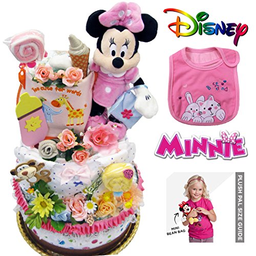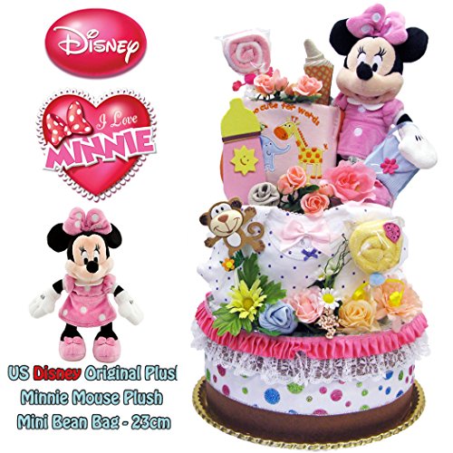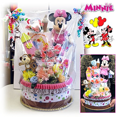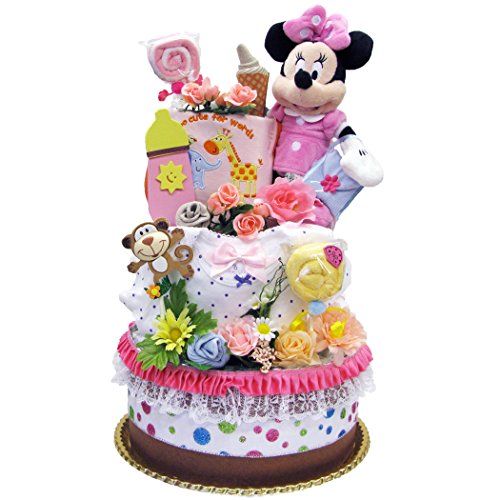出産祝い おむつケーキ 女の子 ディズニー ミニーマウス パンパース 61枚3段 出産内祝い A-S