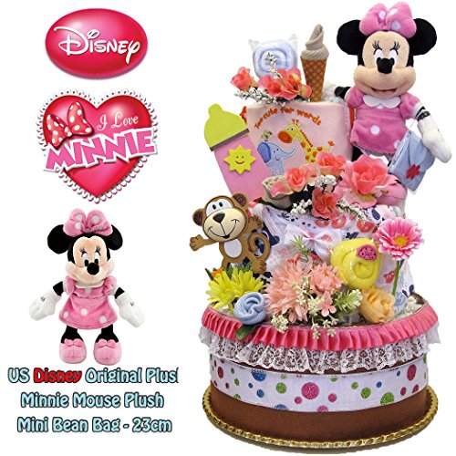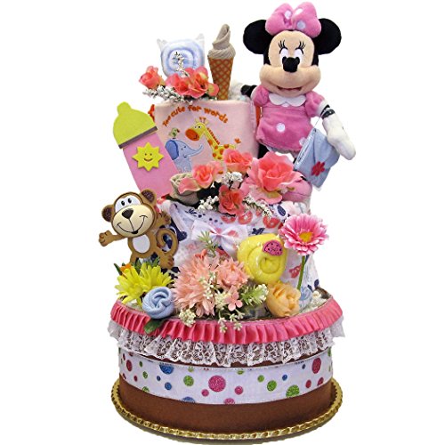 おむつケーキ 女の子 ディズニー ミニー マウス パンパース(S) 61枚3段 出産祝い ダイパーケーキ 内祝い