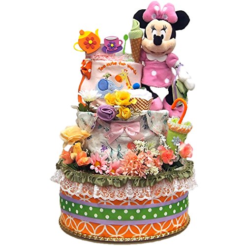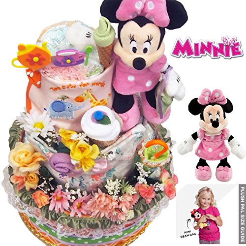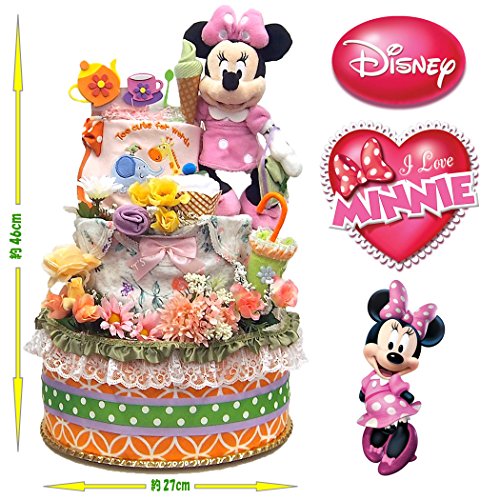 出産祝い ディズニーミニーマウス おむつケーキ 大人気 ミニー 3段 オムツケーキ 喜ばれるベビー用品が沢山 女の子 パンパース M
